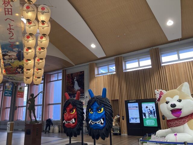男鹿までは電車で1時間くらいや